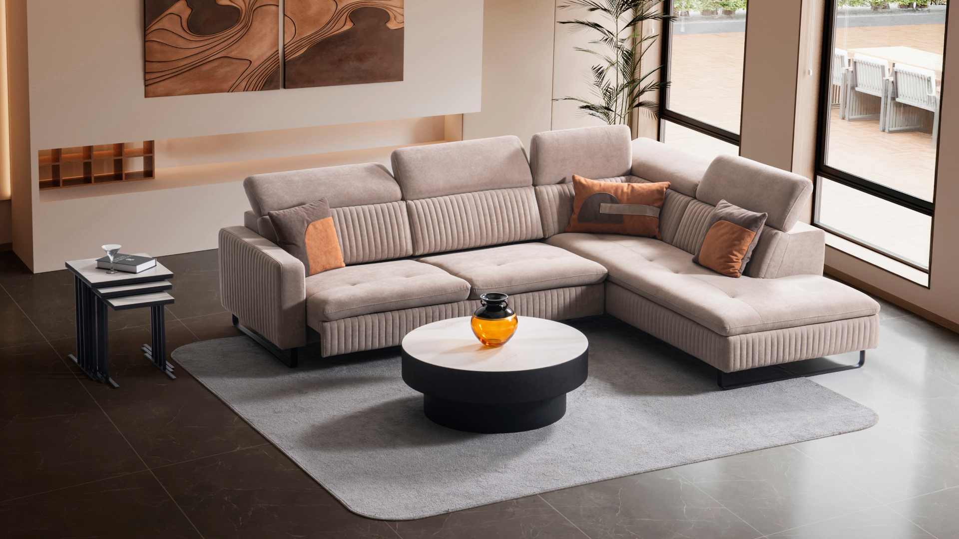Galaksi Köşe, kol kısmındaki düğme sistemi ile kolayca kontrol edilen motorlu yatak fonksiyonu ve baş‑boyun ayar mekanizması ile donatılmıştır. Bu sayede koltuğunuzu tek dokunuşla konforlu bir oturma pozisyonuna ya da yatak haline dönüştürebilirsiniz. Üst düzey mekanizmaları, sağlam yapısı ve modern tasarımıyla yaşam alanınıza hem estetik hem fonksiyon katıyor.